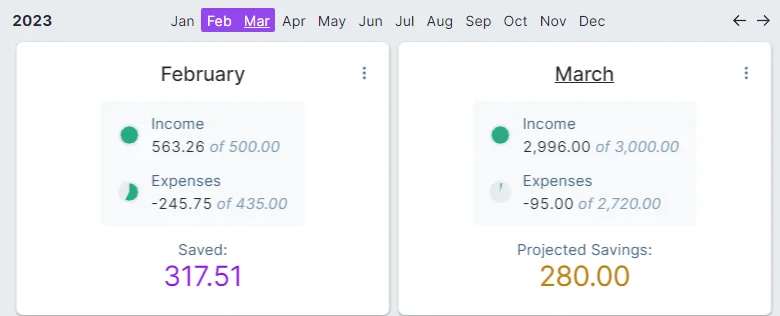 There are useful pie charts next to Income and Expenses to track your progress visually.